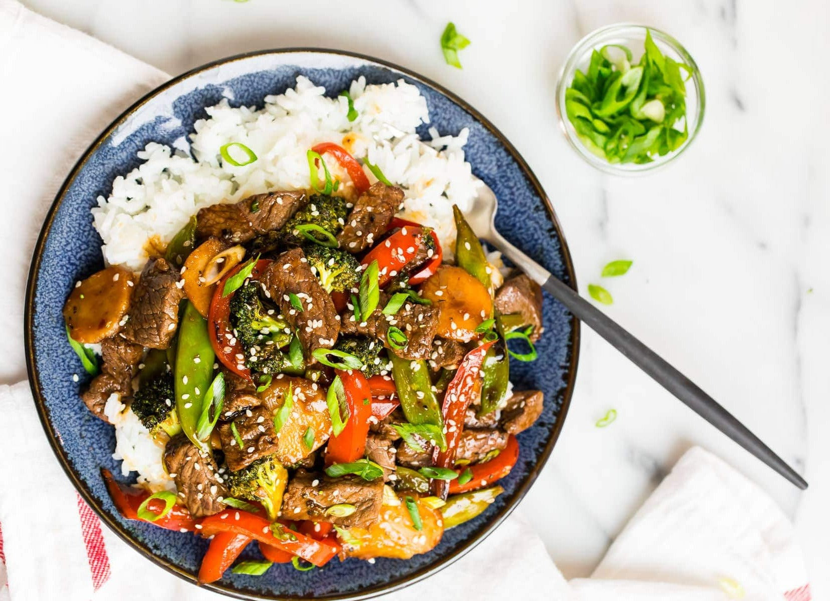 TOP SIRLOIN, STEAK, BROCCOLI, BROWN RICE, SNOW PEAS, CARROTS, GREEN ONIONS, DEHYDRATED ONIONS, TAMARI SOY SAUCE (WATER, ORGANIC SOYBEANS, SALT, ORGANIC ALCOHOL), GINGER, CHILI PEPPER PASTE, TOASTED SESAME SEED OIL, GARLIC, APPLE CIDER VINEGAR.