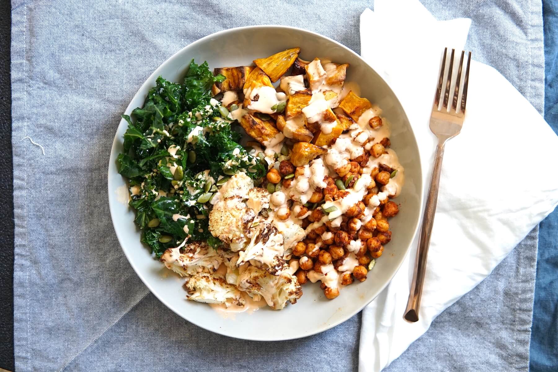SWEET POTATO, KALE, CAULIFLOWER, CHICKPEAS, PUMPKIN SEEDS, AVOCADO OIL, WATER, ORGANIC VINEGAR, SALT, POTATO PROTEIN BLEND, MUSTARD OIL, SALT, CAJUN SEASONING (SEA SALT, CAYENNE PEPPER POWDER, BLACK PEPPER, ONION POWDER, DEXTROSE, GRANULATED GARLIC, MINCED ONION, PAPRIKA, WHITE PEPPER, CANOLA OIL, RED PEPPER, OREGANO, NATURAL LEMON JUICE, SILICON DIOXIDE, THYME, PAPRIKA, CUMIN, SAGE).