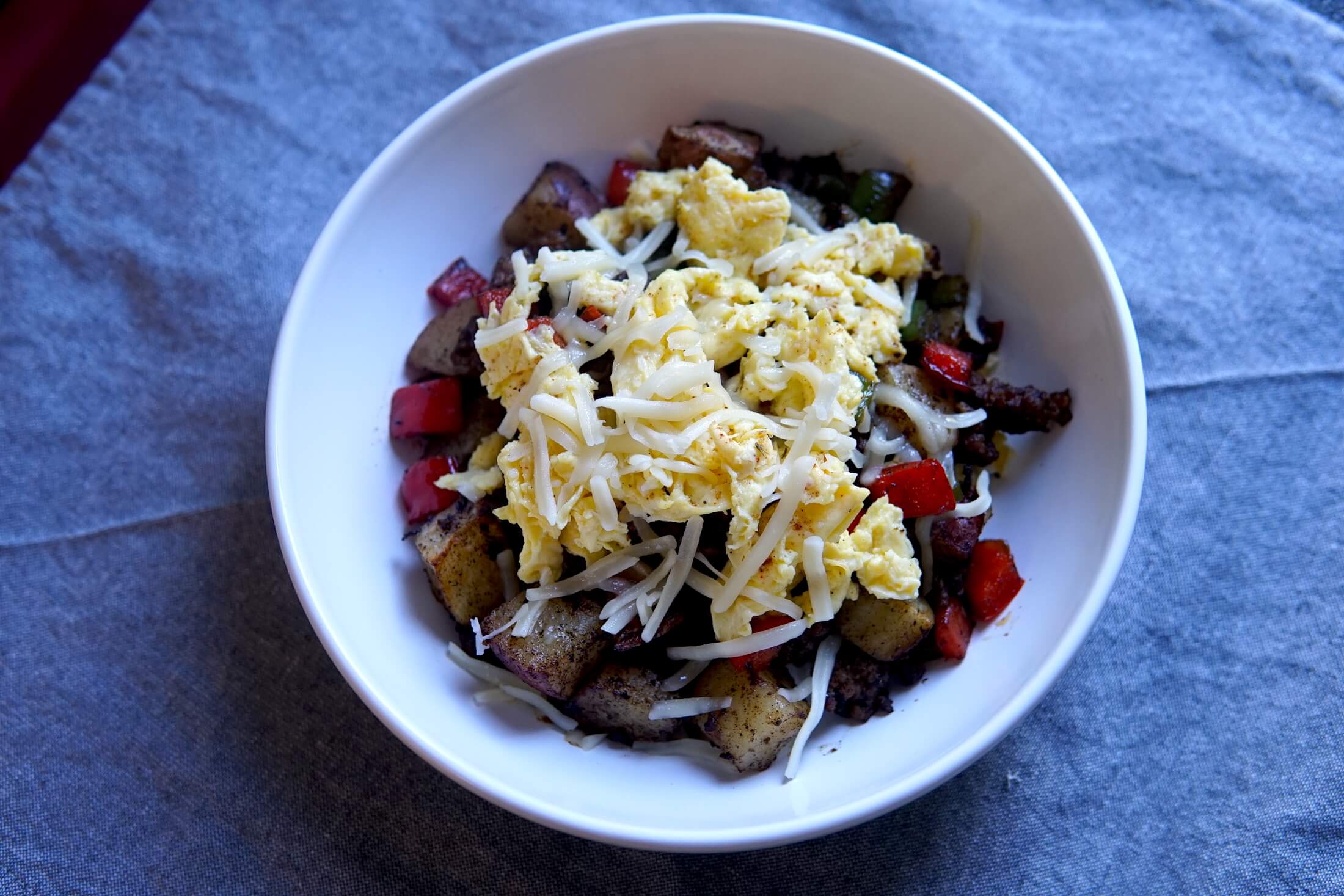 PORK SAUSAGE, EGG, POTATOES, ENRICHED UNBLEACHED FLOUR (WHEAT FLOUR), WATER, VEGETABLE SHORTENING, CORN OIL, SALT, CHEDDAR (MILK, CULTURES, SALT, ENZYMES, ANNATTO), OLIVE OIL, BLACK PEPPER, SALT.